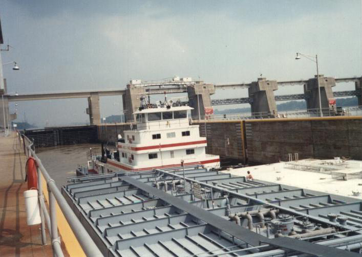 The M/V James G. Hines exiting Newburgh Lock on the Ohio River